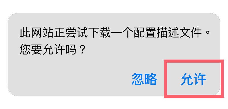 允许安装未知的来源,点击“允许”下载安装必要的描述文件